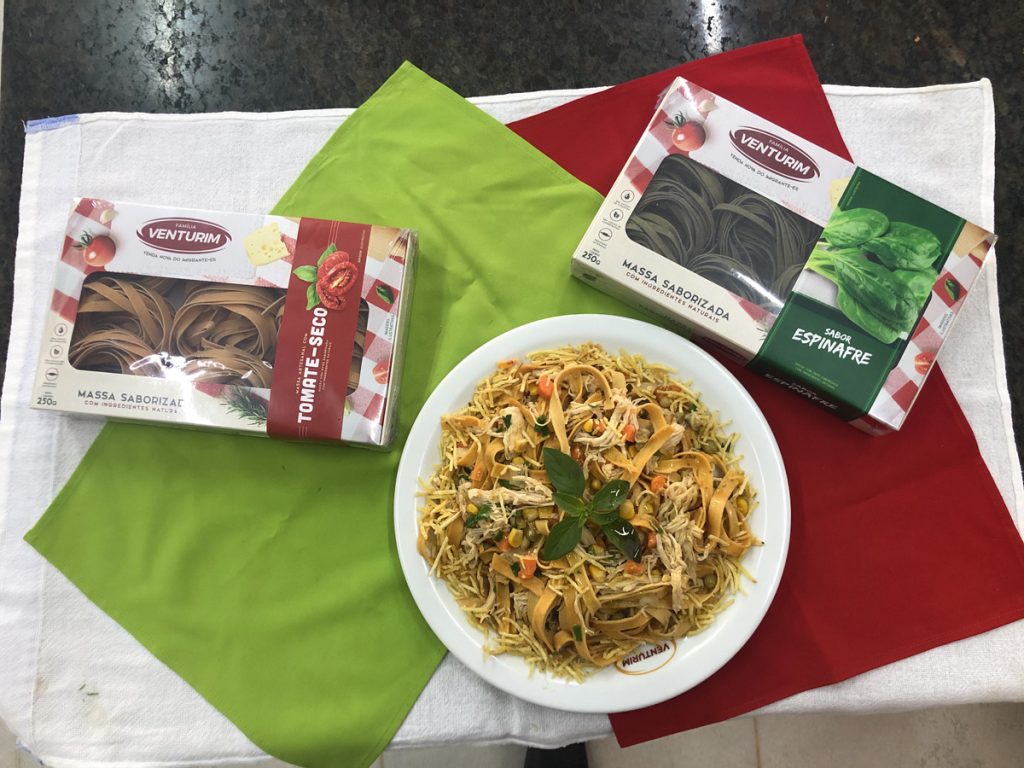 As dezenas de massas saborizadas e coloridas são as especialidades do Restaurante Venturim. Para o Dia das Mães, o mimo para elas será um prato especial de uma massa de 600 gramas, com sabor a ser escolhido pelo cliente. O preparo é na chapa, com peito de frango desfiado, milho verde, ervilha, cenoura cozida e temperos verdes. O prato pode ser consumido no local ou também pedido pelo sistema delivery. O valor é R$ 15,00, válido para todo o mês de maio.