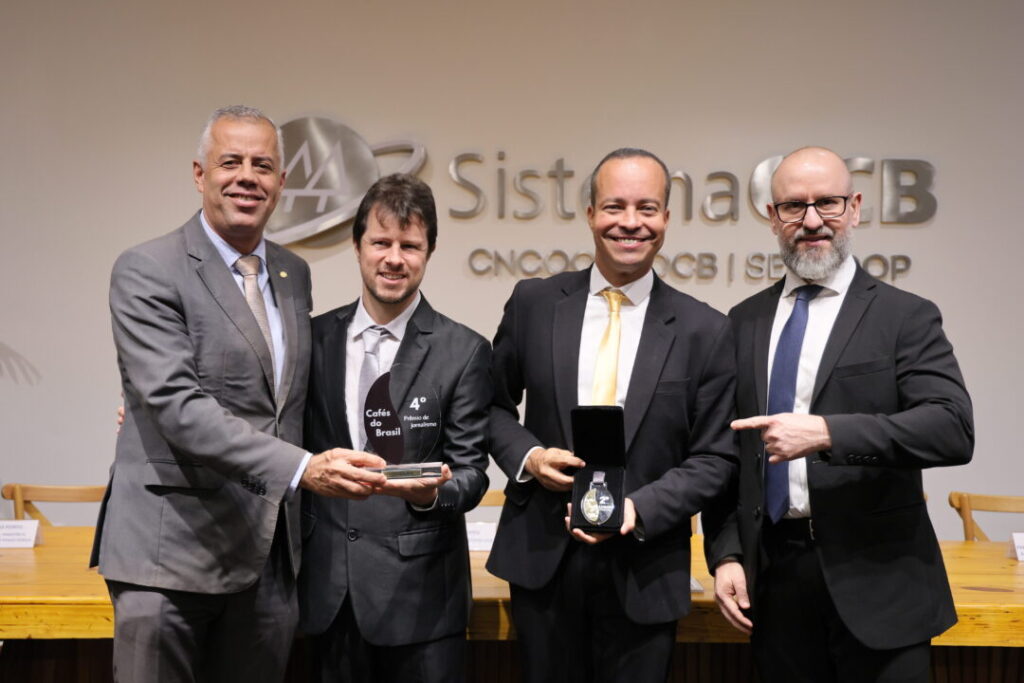 O evento, realizado pelo Conselho Nacional do Café (CNC), integrou a programação oficial da noite, que também contou com a entrega do Mérito Especial do Café, honraria concedida a grandes lideranças do setor. Entre os homenageados estavam Márcio Lopes de Freitas, presidente da OCB, Arlindo Porto, ex-governador e ex-ministro e Miguel Oliveira, presidente do Sicoob, conforme a programação oficial do evento. Participaram da solenidade o deputado federal Evair de Melo e a ministra-chefe da Divisão de Política Agrícola do Ministério das Relações Exteriores (MRE), Grace Tanno.