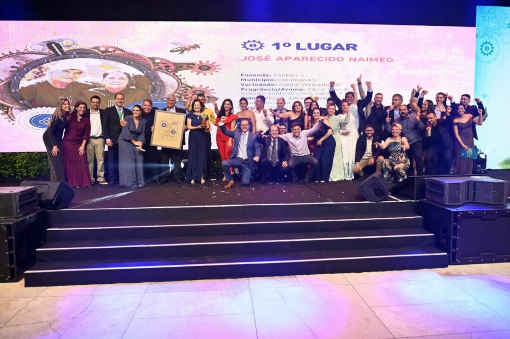 A noite de ontem (30) foi de celebração para a cafeicultura mineira. Os melhores cafés da safra de 2022 foram revelados durante o 10º Prêmio Região do Cerrado Mineiro. O evento, realizado no Palácio de Cristal, em Uberlândia (MG), reuniu cerca de 600 convidados, entre representantes da cadeia produtiva do grão mineiro, políticos, autoridades e convidados.