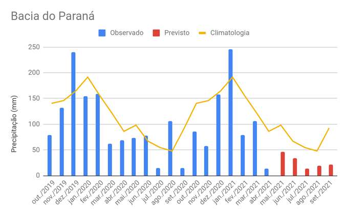 “Estudos realizados pelo SNM de acompanhamento meteorológico para o Setor Elétrico Brasileiro alertam que as perspectivas climáticas para 2021/2022 indicam que a maior parte da região central do país, a partir de maio até final de setembro, entra em seu período com menor volume de chuvas (estação seca). A previsão climática elaborada conjuntamente pelo INPE, INMET e FUNCEME indica para o período Junho-Julho-Agosto/2021 a mesma tendência, ou seja, pouco volume de chuva na maior parte da Bacia do Rio Paraná. Essa previsão é consistente com a de outros centros internacionais de previsão climática”, diz nota conjunta.