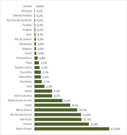 Os resultados regionais mostram a liderança do Centro-Oeste no faturamento neste ano, R$ 362, 87 bilhões, Sul R$ 309,2 bilhões, Sudeste R$ 250,9 bilhões, Nordeste R$ 98,3 bilhões e Norte 70,0 bilhões.
