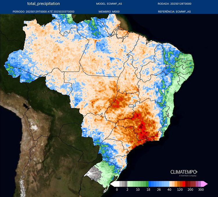 Uma extensa área de nuvens carregadas cobre parte do país, trazendo potencial para chuvas intensas e volumes elevados. As regiões mais afetadas incluem São Paulo, Rio de Janeiro, centro-sul de Minas Gerais, Mato Grosso, Goiás, Distrito Federal, centro-norte de Mato Grosso do Sul e Tocantins. O alerta é importante: em áreas destacadas no mapa, os acumulados podem superar os 100 milímetros, enquanto algumas localidades no sul de Minas Gerais podem registrar entre 200 e 300 milímetros de chuva.