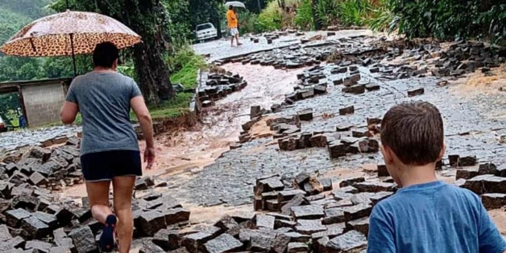 Julio Huber A forte chuva que atinge vários municípios do Espírito Santo neste domingo (1º) causou estragos em várias localidades do interior do Estado. Em Alfredo Chaves, a enxurrada destruiu o calçamento de uma rua na localidade de Rio Veado. A assessoria de imprensa da Prefeitura disse que há informações de pessoas desalojadas em Matilde,…